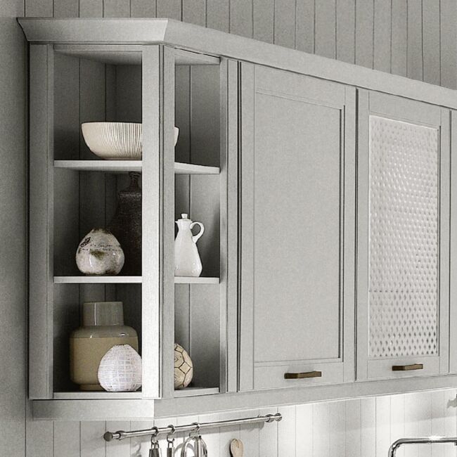 Sprossentüren und Kranzleisten sind unverzichtbare Designelemente für eine stilvolle Landhausküche. Sprossentüren mit ihren charmanten Glaseinsätzen lassen Licht durch und schaffen eine einladende, luftige Atmosphäre. Sie sind perfekt für Oberschränke und Vitrinen geeignet, um Geschirr und dekorative Stücke stilvoll zu präsentieren.