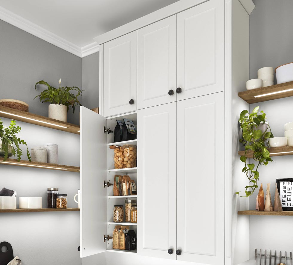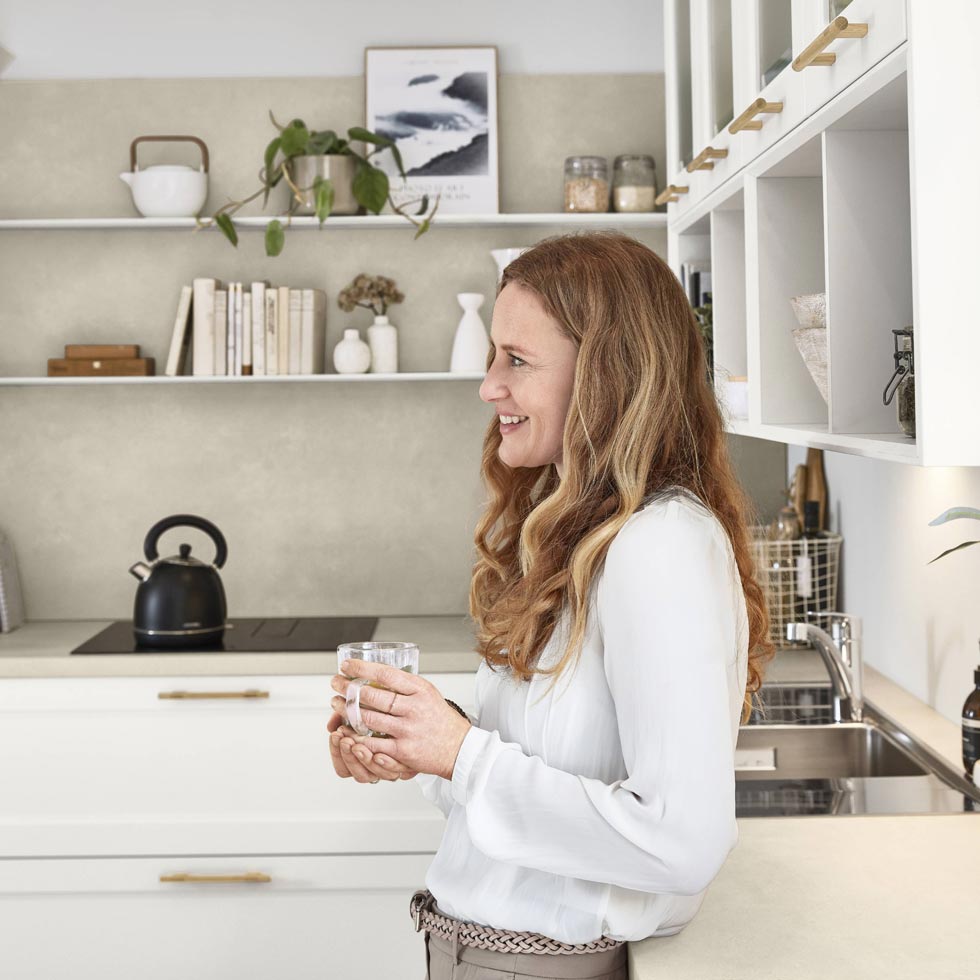 Offene Regale, schlichte Linien und durchdachte Stauraumlösungen machen die Küche nicht nur schön, sondern auch praktisch.
