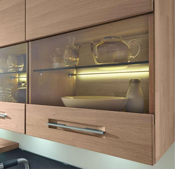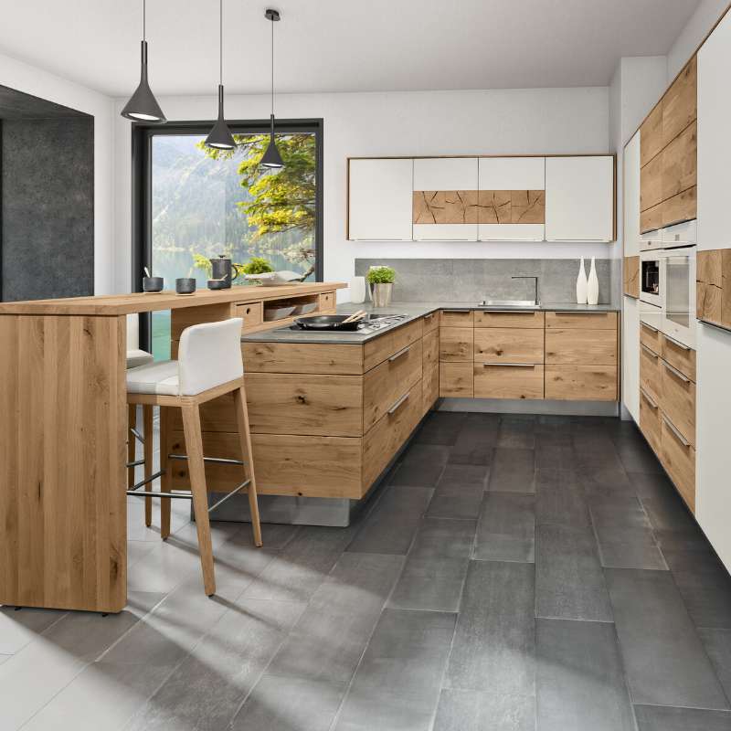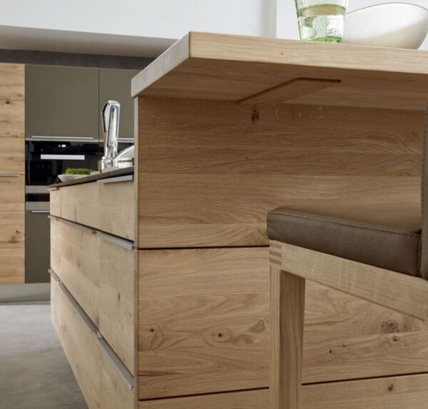 Holz lebt. Und darum entsteht in einer Küche aus diesem natürlichen Werkstoff immer eine warme und behagliche Stimmung. Gleichzeitig verbessert Holz nachweislich das Raumklima und ist sehr robust, unempfindlich und besonders langlebig. Kein Wunder also, dass Küchenmöbel aus Massivholz oftmals über Generationen in der Familie bleiben. Für alle, die also gerne natürlich kochen, wohnen und leben, ist eine solche Küche eine ebenso sinnvolle wie nachhaltige Lösung.