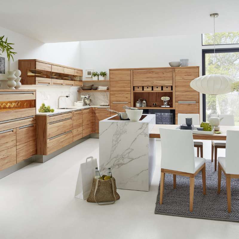 MASSIVA Massivholzküchen bieten die perfekte Kombination aus natürlicher Optik und modernem Innenleben. Hochwertige Holzfronten strahlen Lebenslust und Natürlichkeit aus, während im Inneren innovative Technik, intelligente Stauraumlösungen und zahlreiche Extras auf Sie warten. Natürlich und Neu passen einfach perfekt zusammen – in den MASSIVA Küchen aus Massivholz.