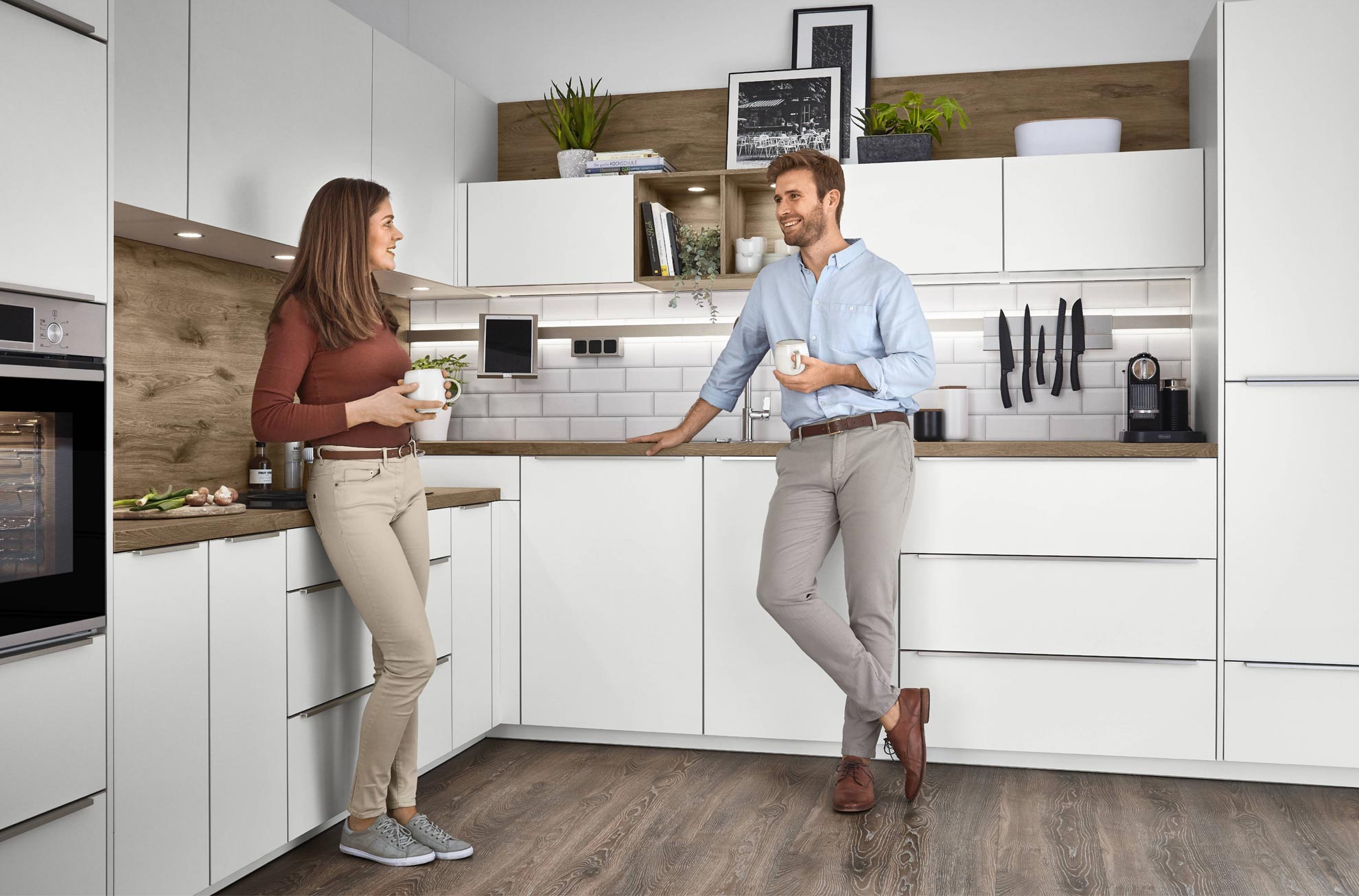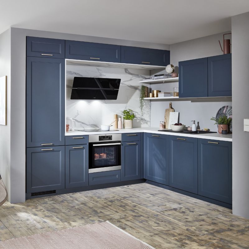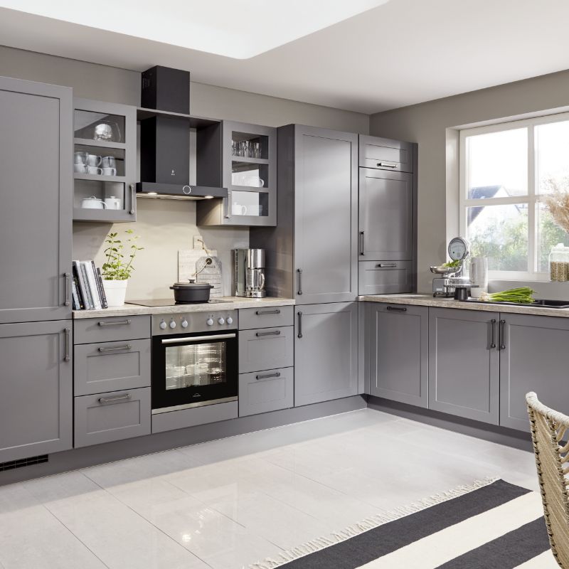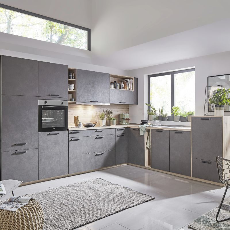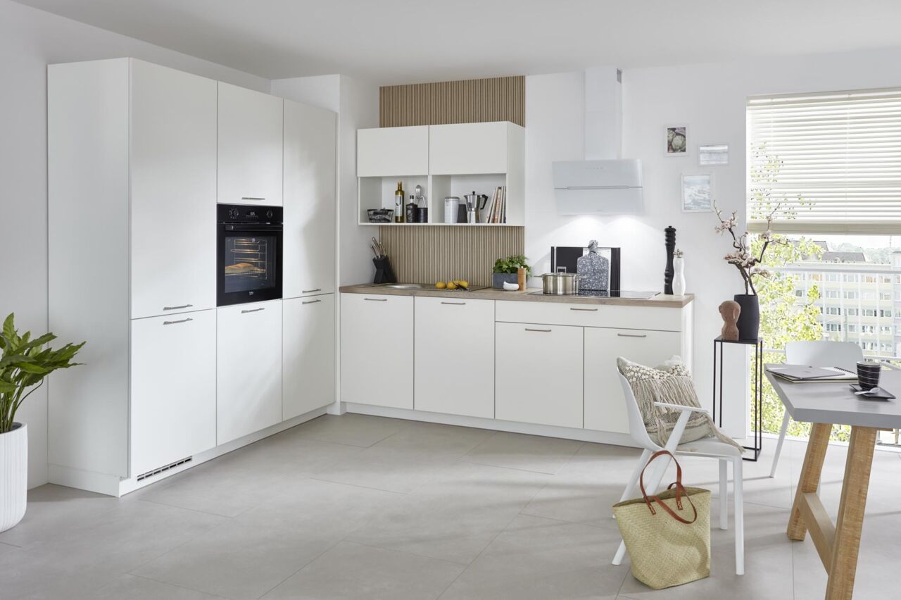 Auch wenn ein Grundriss nicht immer viel Spielraum für die planerische Gestaltung bietet: L-Küchen haben sich mit ihren zwei Zeilen, cleveren Schranklösungen über Eck und ergonomischen Arbeitsbereichen, als besonders anpassungsfähig und alltagstauglich bewährt – vor allem in geschlossenen und kleinen Räumen.
