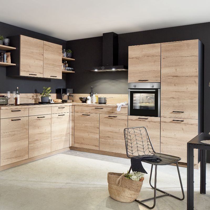 Obwohl die L-Küche klassisch erscheint, bietet sie überraschend vielseitige Planungsmöglichkeiten. Eckküchen sind clevere Raumlösungen und lassen sich in verschiedenen Stilrichtungen gestalten. Egal ob grifflose Optik, Landhausstil oder Industrial Loft Style – eine gut geplante Winkelküche sorgt für kurze Arbeitswege, viel Stauraum und fließende Arbeitsabläufe. Hier wird das Kochen und Leben zum Vergnügen.